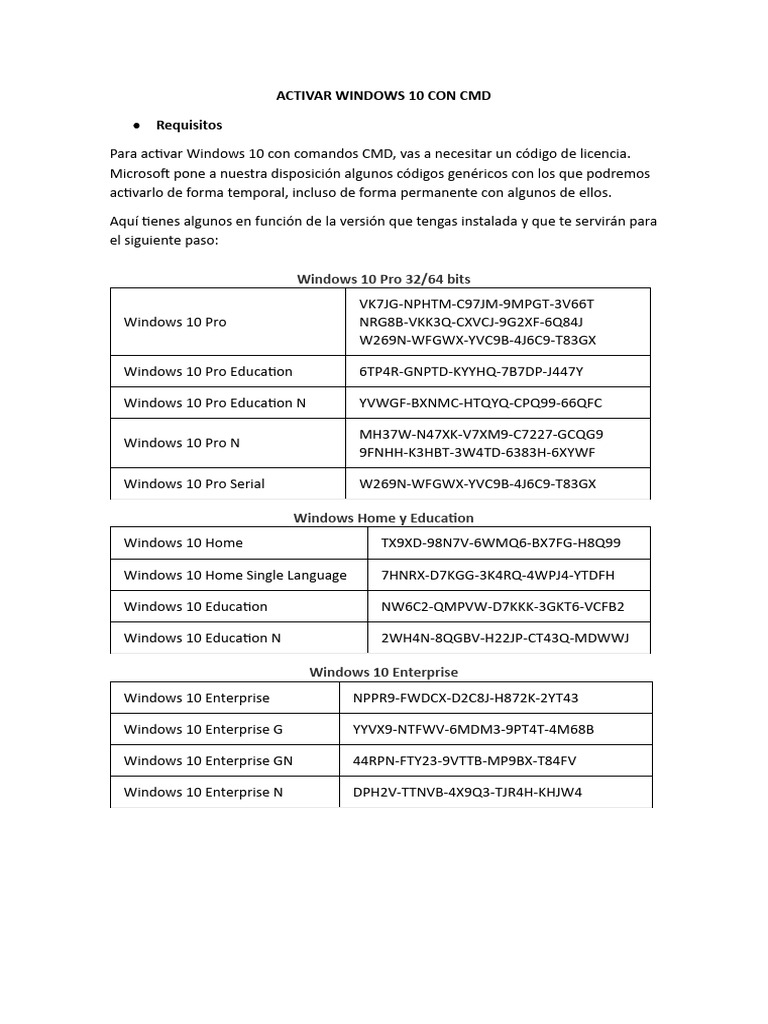ACTIVAR WINDOWS 10 CON CMD
