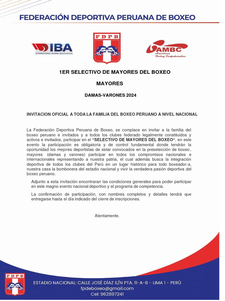 INVITACION OFICIAL A TODA LA FAMILIA DEL BOXEO PERUANO A NIVEL NACIONAL