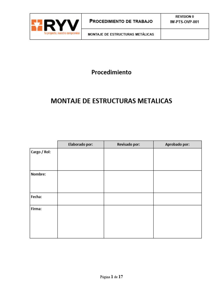 PROCEDIMIENTO: MONTAJE DE ESTRUCTURAS METALICAS
