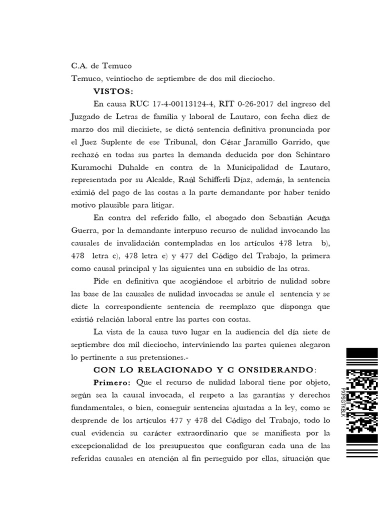 Kuramochi Duhalde en contra de la Municipalidad de Lautaro,