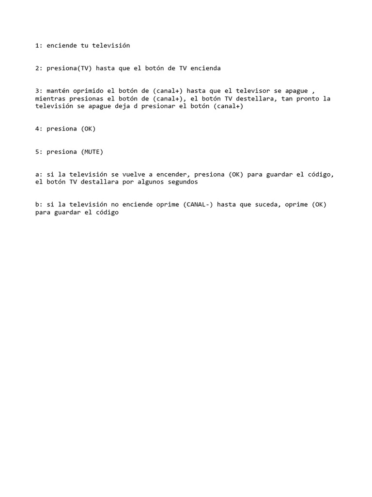 mientras presionas el botón de (canal+), el botón TV destellara, tan pronto la