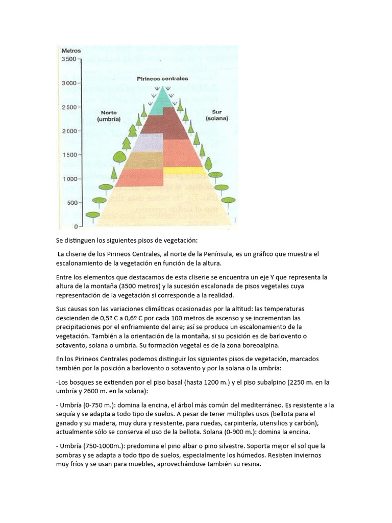 En los Pirineos Centrales podemos distinguir los siguientes pisos de vegetación, marcados