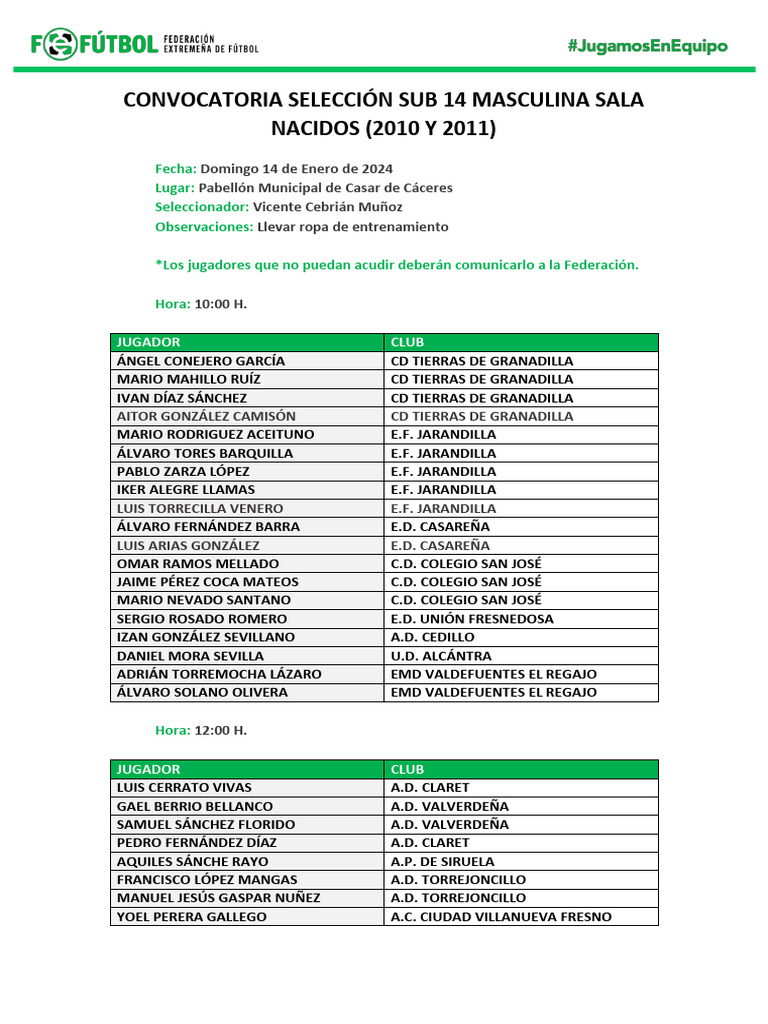*Los jugadores que no puedan acudir deberán comunicarlo a la Federación.