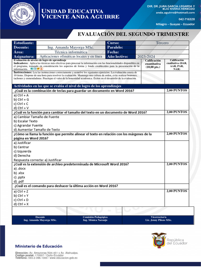 tachones y enmendaduras. Practique el valor de la honestidad académica. Éxitos en el desarrollo de la evaluación