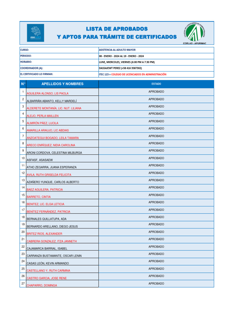 COORDINADOR (A): DASSAJEWT PEREZ (+58 416 3587302)