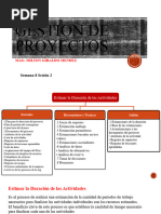 la duración de las actividades.
