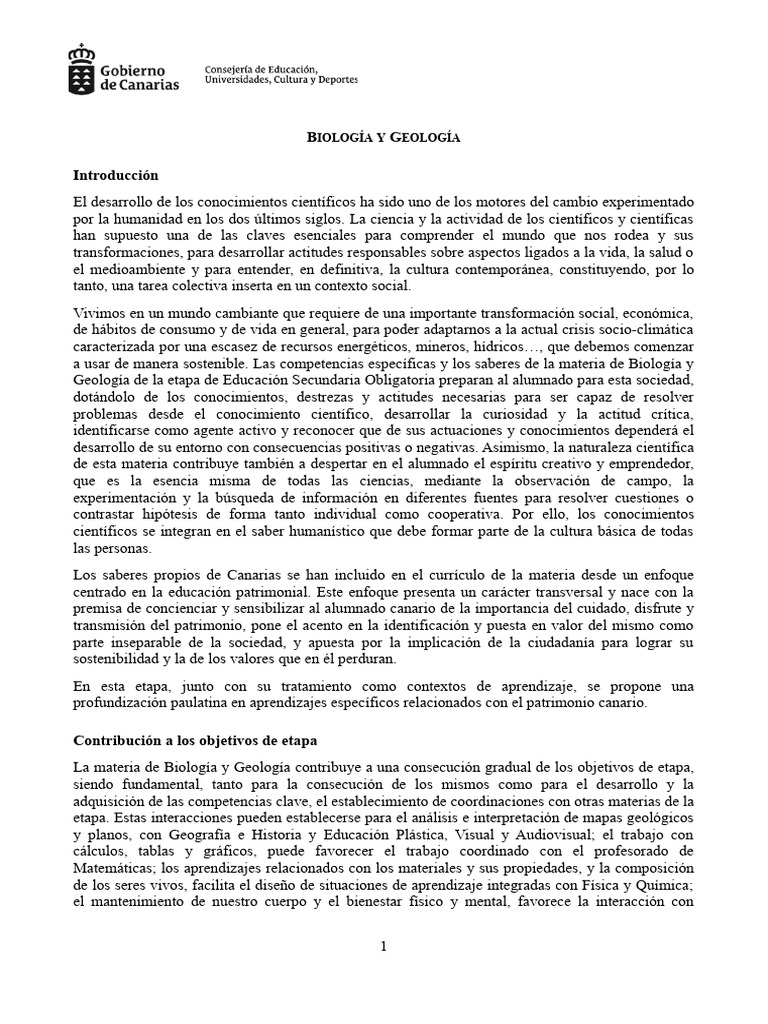 a usar de manera sostenible. Las competencias específicas y los saberes de la materia de Biología y