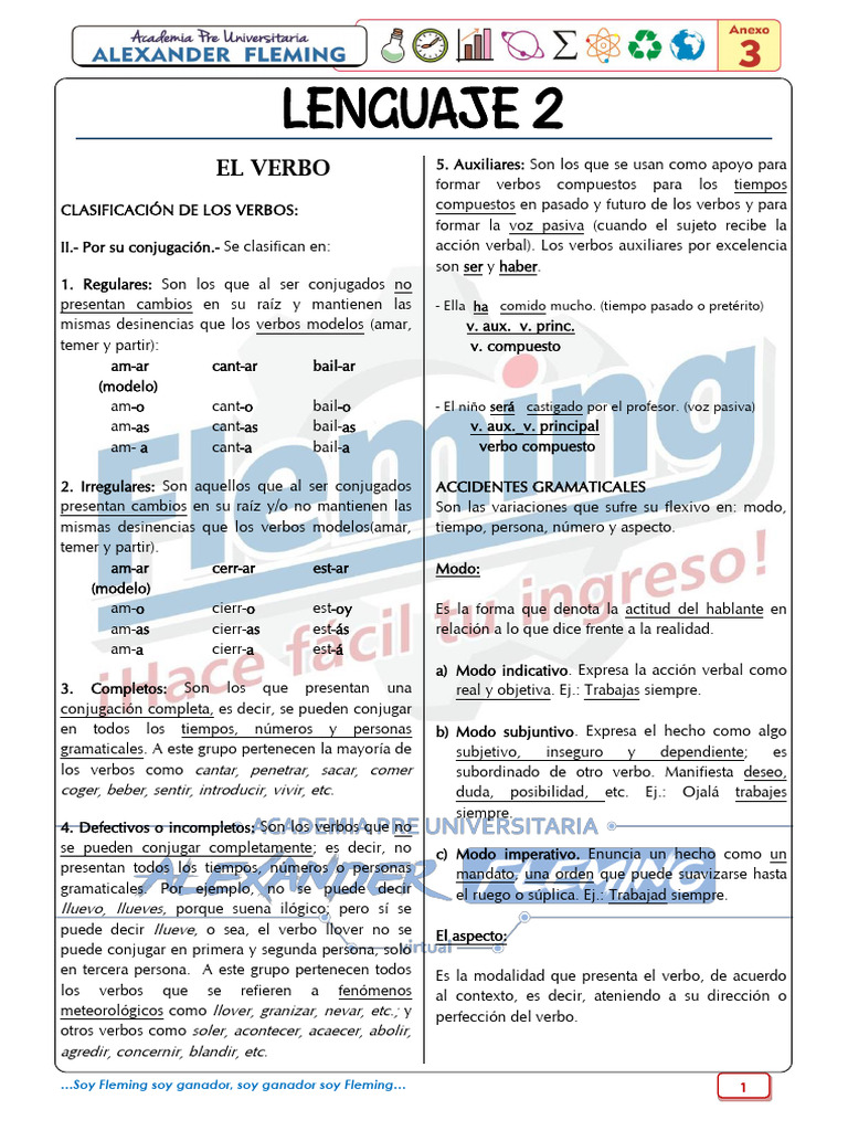 II.- Por su conjugación.- Se clasifican en: acción verbal). Los verbos auxiliares por excelencia