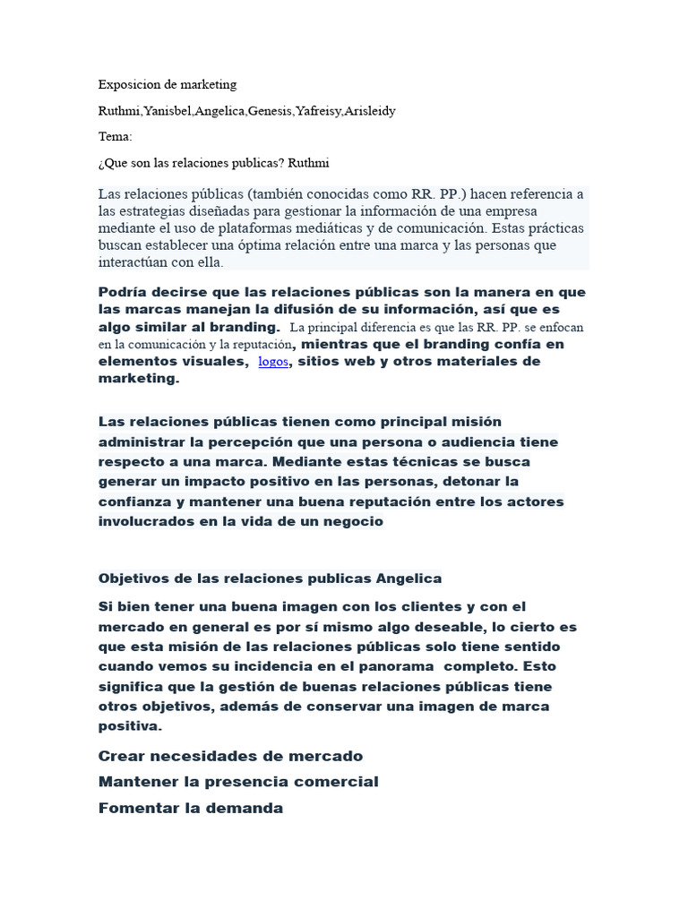 Las Relaciones Públicas que tiene que ver con la parte empresarial, se encarga de