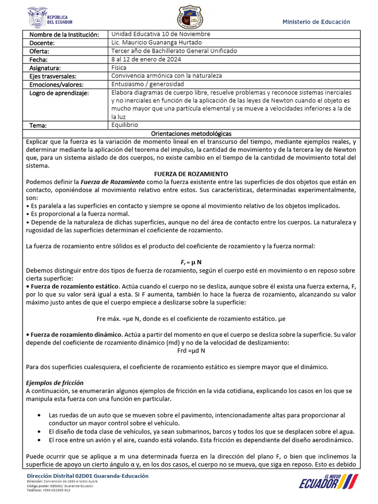 Logro de aprendizaje: Elabora diagramas de cuerpo libre, resuelve problemas y reconoce sistemas inerciales