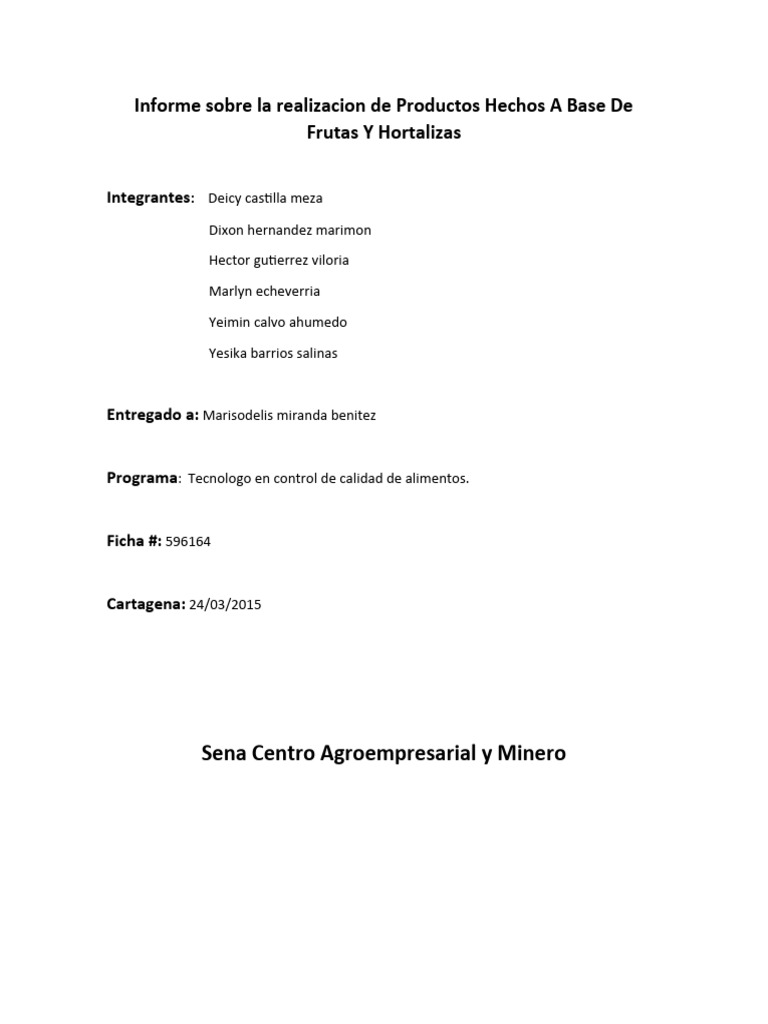 Este informe trata de la elaboracion de productos derivados de frutas y hortalizas los