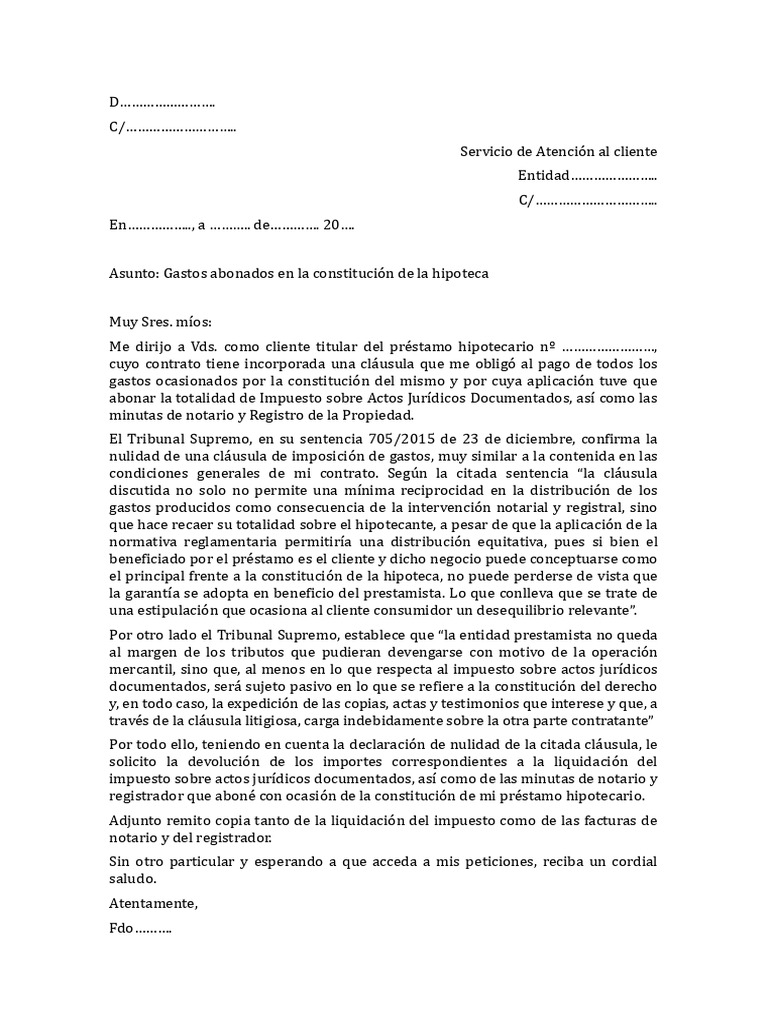 Me dirijo a Vds. como cliente titular del préstamo hipotecario nº ……………………,