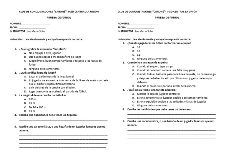 PRUEBA DE FÚTBOL PRUEBA DE FÚTBOL