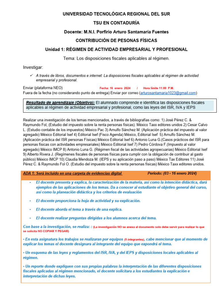 ADA 1: Será incluido en una carpeta de evidencias digital Periodo: (03 - 16 enero 2024)