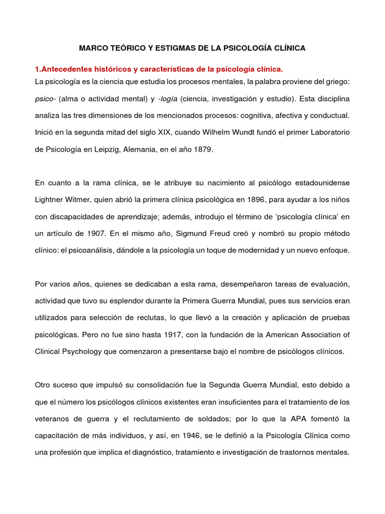 MARCO TEÓRICO Y ESTIGMAS DE LA PSICOLOGÍA CLÍNICA