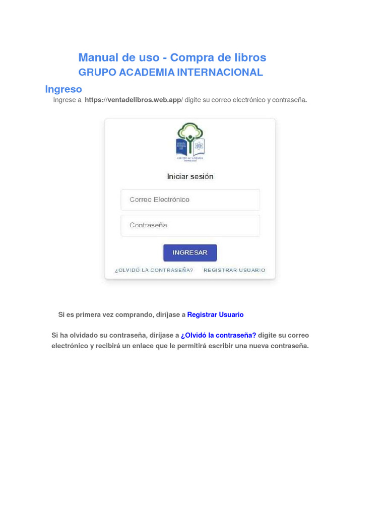 Si es primera vez comprando, diríjase a Registrar Usuario