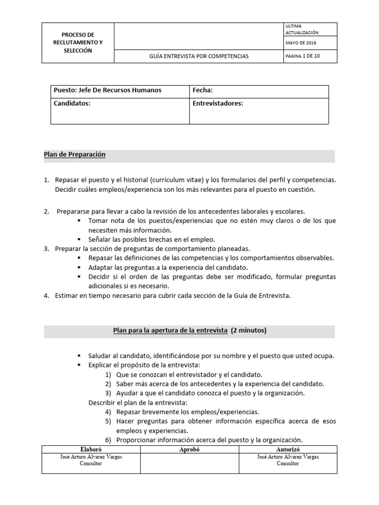 GUÍA ENTREVISTA POR COMPETENCIAS PAGINA 1 DE 10