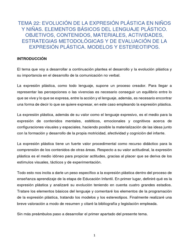 de la expresión plástica, tratando los modelos y los estereotipos. Finalmente realizaré una