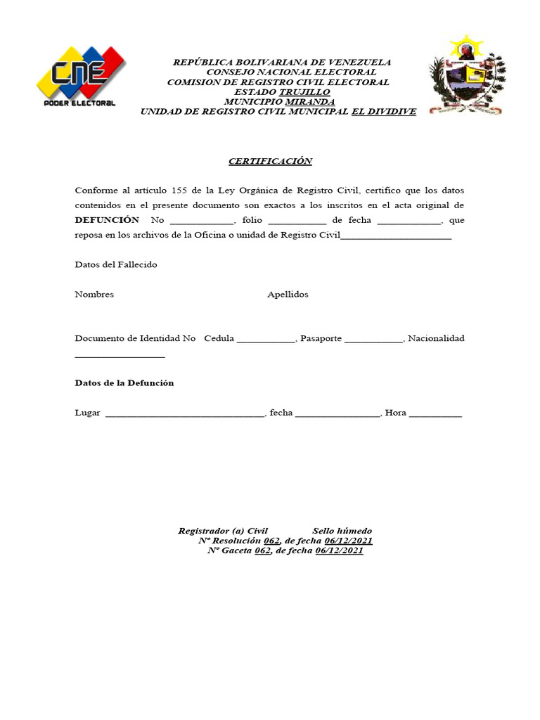 UNIDAD DE REGISTRO CIVIL MUNICIPAL EL DIVIDIVE