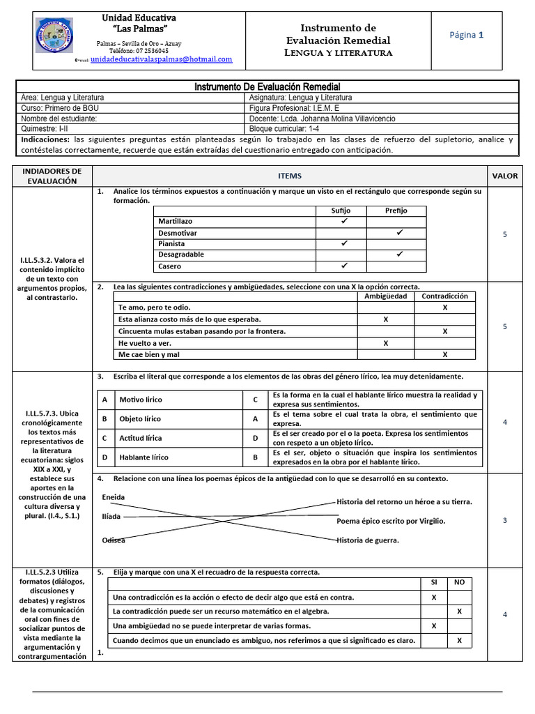 Área: Lengua y Literatura Asignatura: Lengua y Literatura