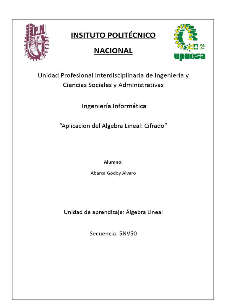 “Aplicacion del Algebra Lineal: Cifrado”