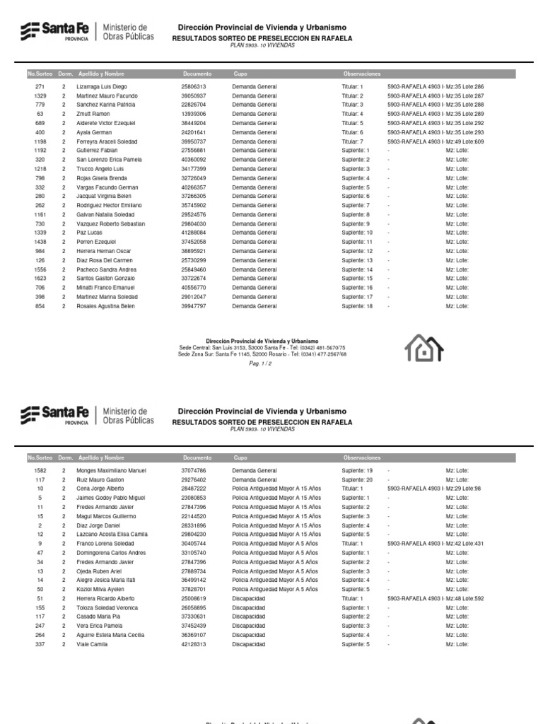 51 2 Herrera Ricardo Alberto 25008619 Discapacidad Titular: 1 5903-RAFAELA 4903 I- Mz:48 Lote:592