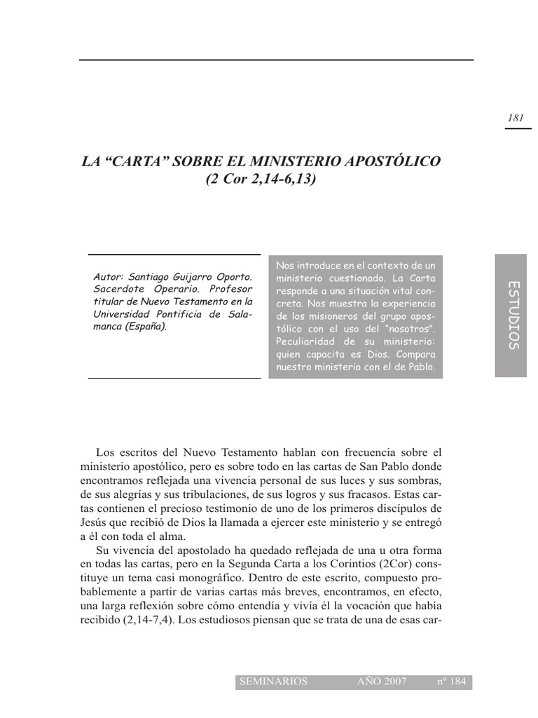 por Pablo. Pero, ¿podemos decir lo mismo de la carta sobre el ministerio