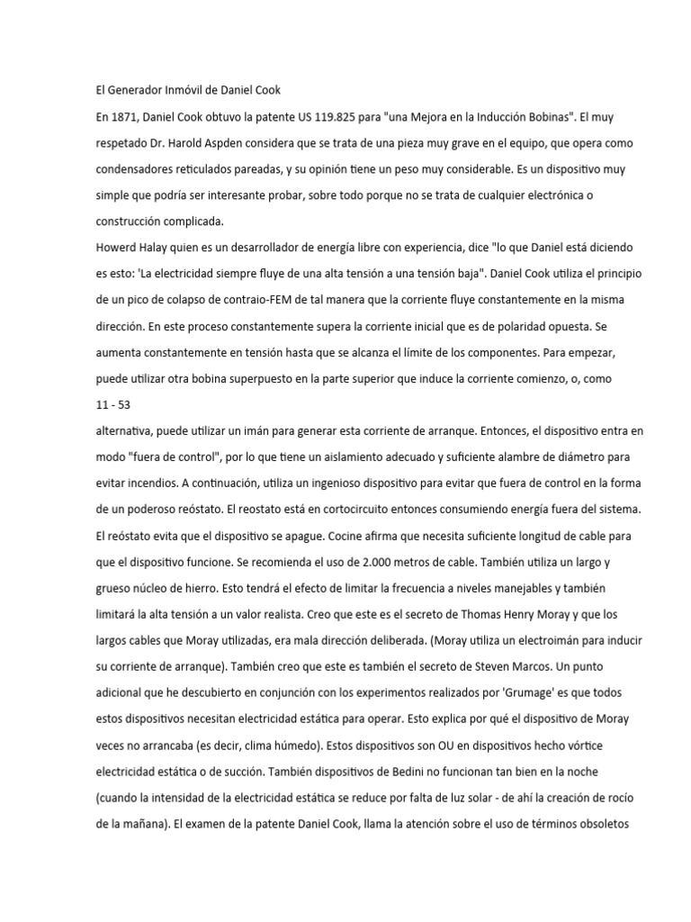 experimentos que pueden ayudar a entender cómo funciona el generador inmóvil de Daniel Cook. Algunos