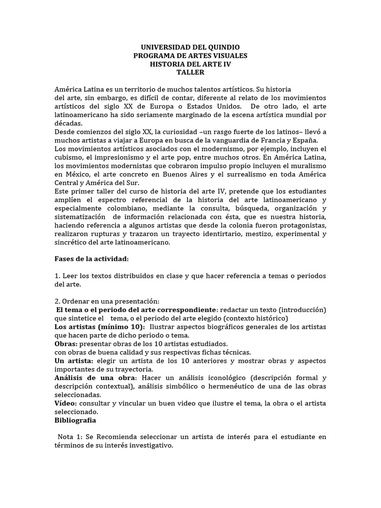 Este primer taller del curso de historia del arte IV, pretende que los estudiantes