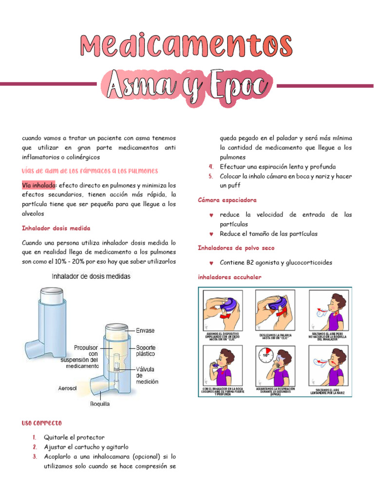 cuando vamos a tratar un paciente con asma tenemos queda pegado en el paladar y será más mínima
