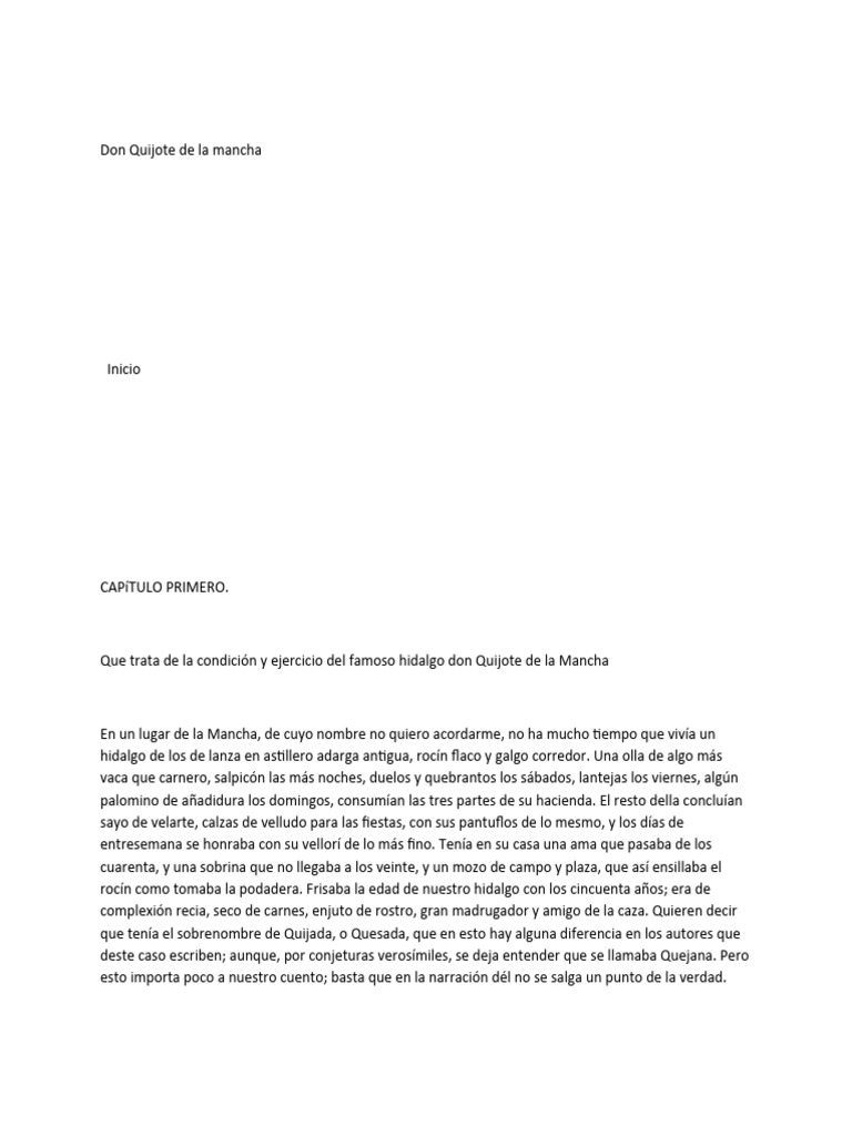 En un lugar de la Mancha, de cuyo nombre no quiero acordarme, no ha mucho tiempo que vivía un