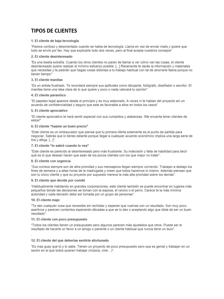 qué es lo que desean hacen que sean de los pocos clientes con los que mejor no tratar”.