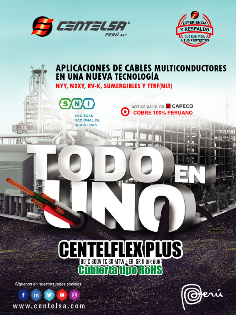 Los Cables CENTELSA CENTELFLEX PLUS 90°C TC SR son diseñados bajo los estándares Internaciona-