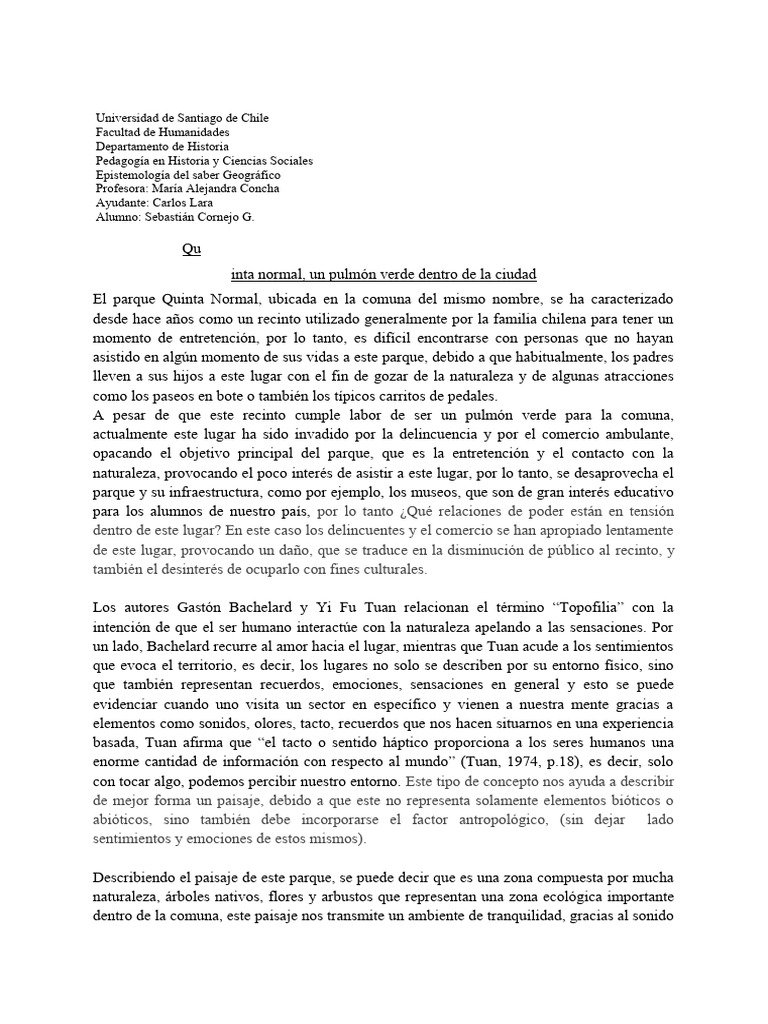 descripción del parque Quinta normal, como de otros, es totalmente subjetiva, es decir,
