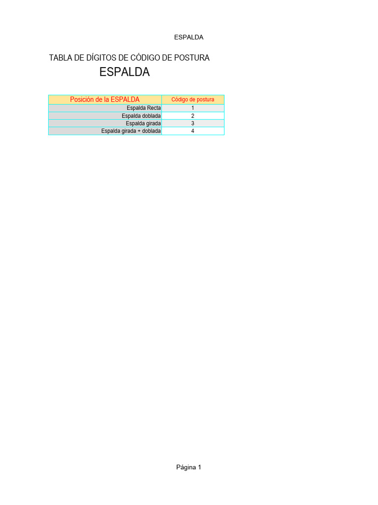 DÍGITOS DE CÓDIGO DE POSTURA (OWAS)