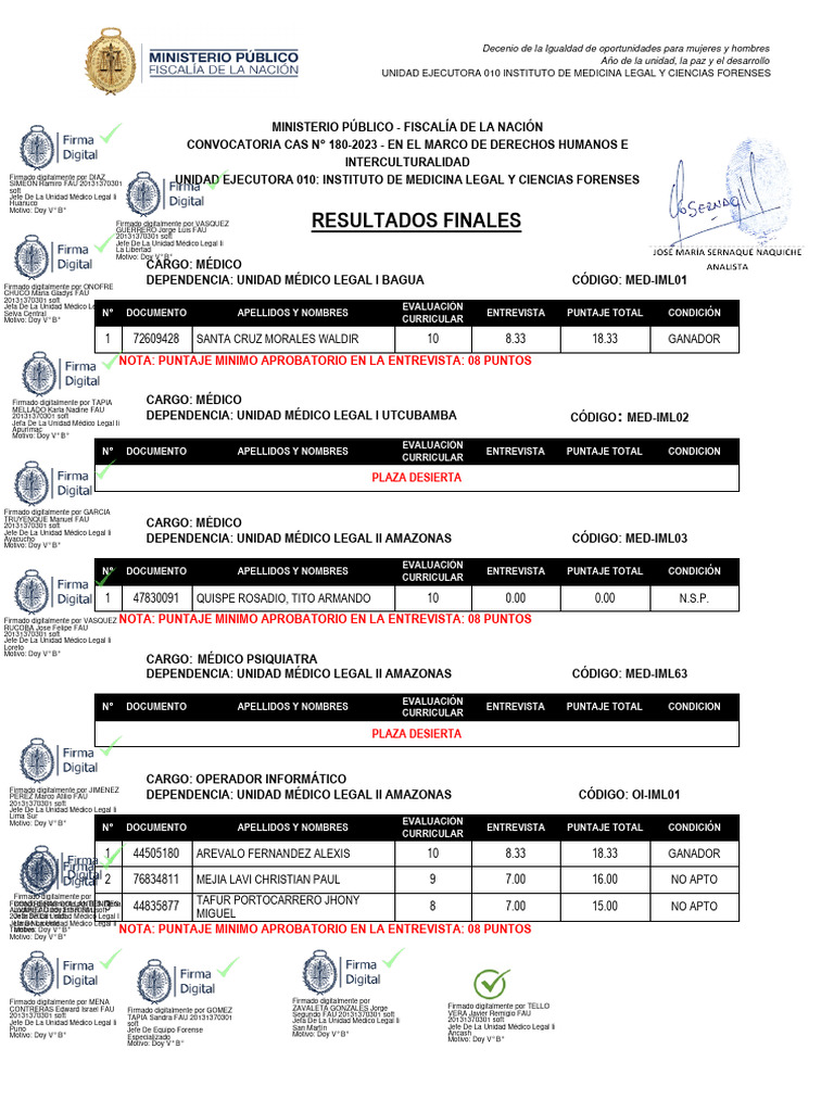 NOTA: PUNTAJE MINIMO APROBATORIO EN LA ENTREVISTA: 08 PUNTOS
