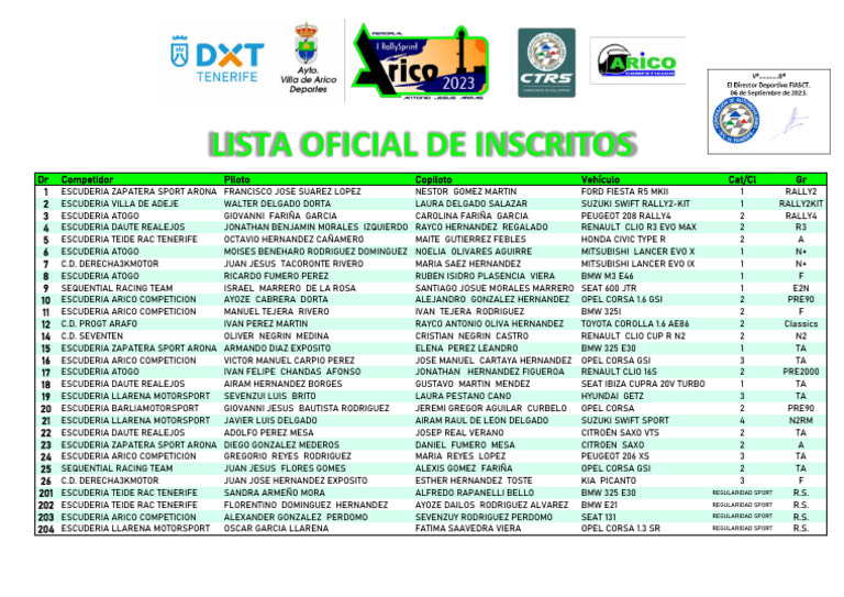 Dr Competidor Piloto Copiloto Vehículo Cat/Cl Gr