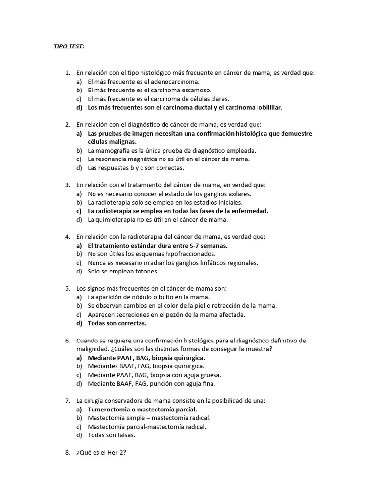 2. En relación con el diagnóstico de cáncer de mama, es verdad que: