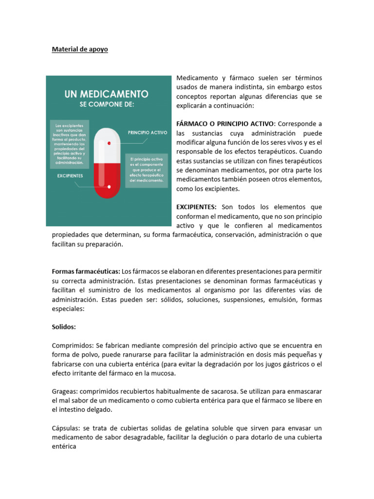 Formas farmacéuticas: Los fármacos se elaboran en diferentes presentaciones para permitir