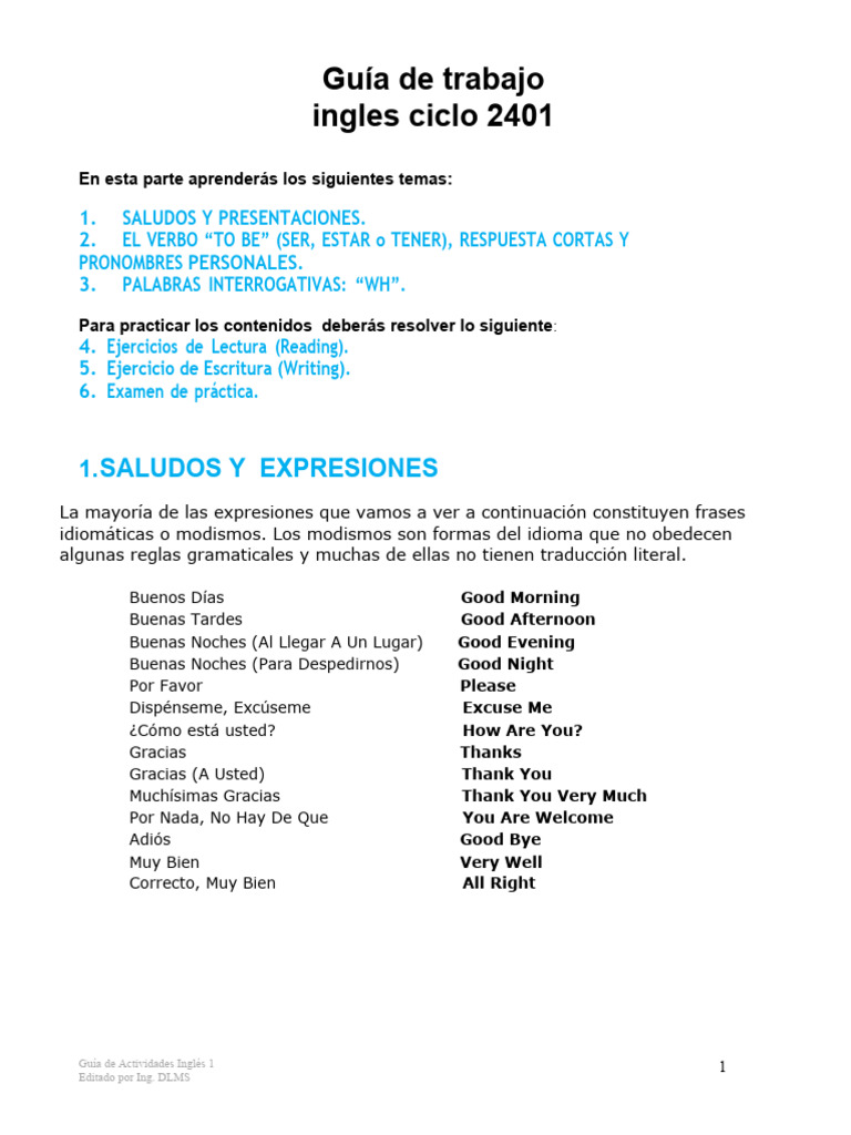 2. EL VERBO “TO BE” (SER, ESTAR o TENER), RESPUESTA CORTAS Y