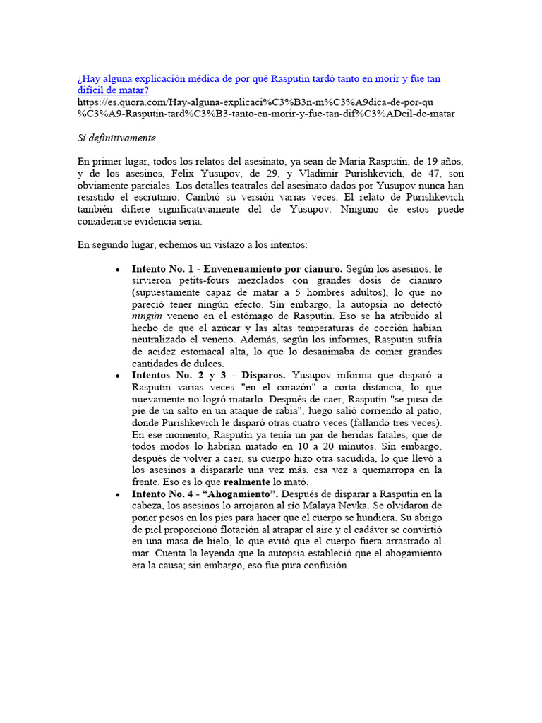 neutralizado el veneno. Además, según los informes, Rasputin sufría