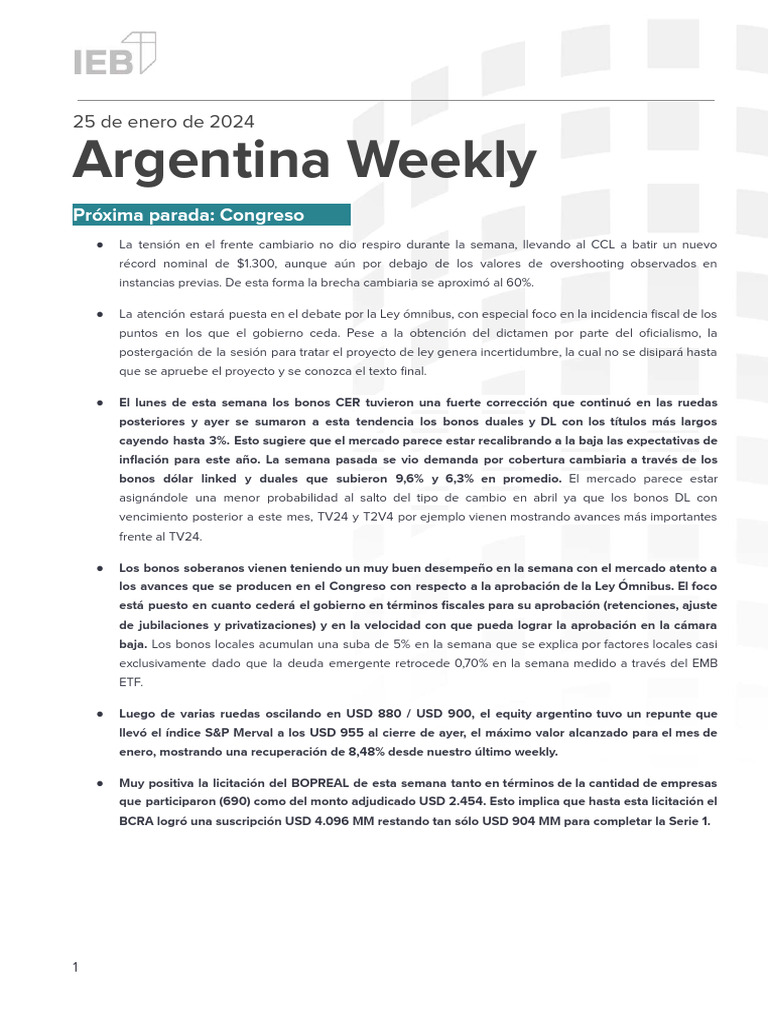 ● Muy positiva la licitación del BOPREAL de esta semana tanto en términos de la cantidad de empresas