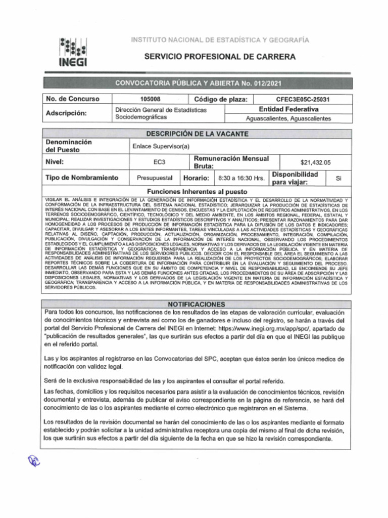 {ue acredten os datos rgisvados per cada aspirant on el poral el Servo Profesonal de Carers dl INEGI