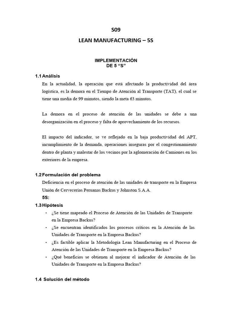 • ¿Es factible aplicar la Metodología Lean Manufacturing en el Proceso de