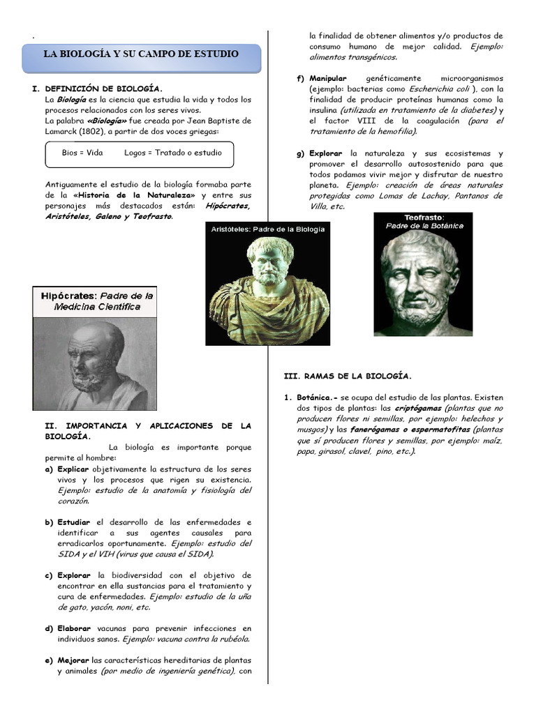 Biología........................................................................................ e) los principios y leyes que rigen la vida.