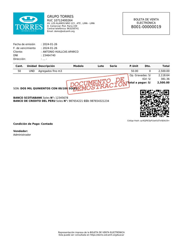 Representación impresa de la BOLETA DE VENTA ELECTRÓNICA