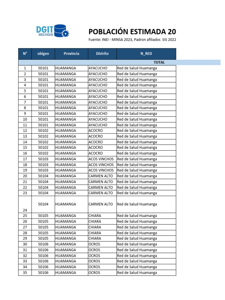 10 50101 HUAMANGA AYACUCHO Red de Salud Huamanga