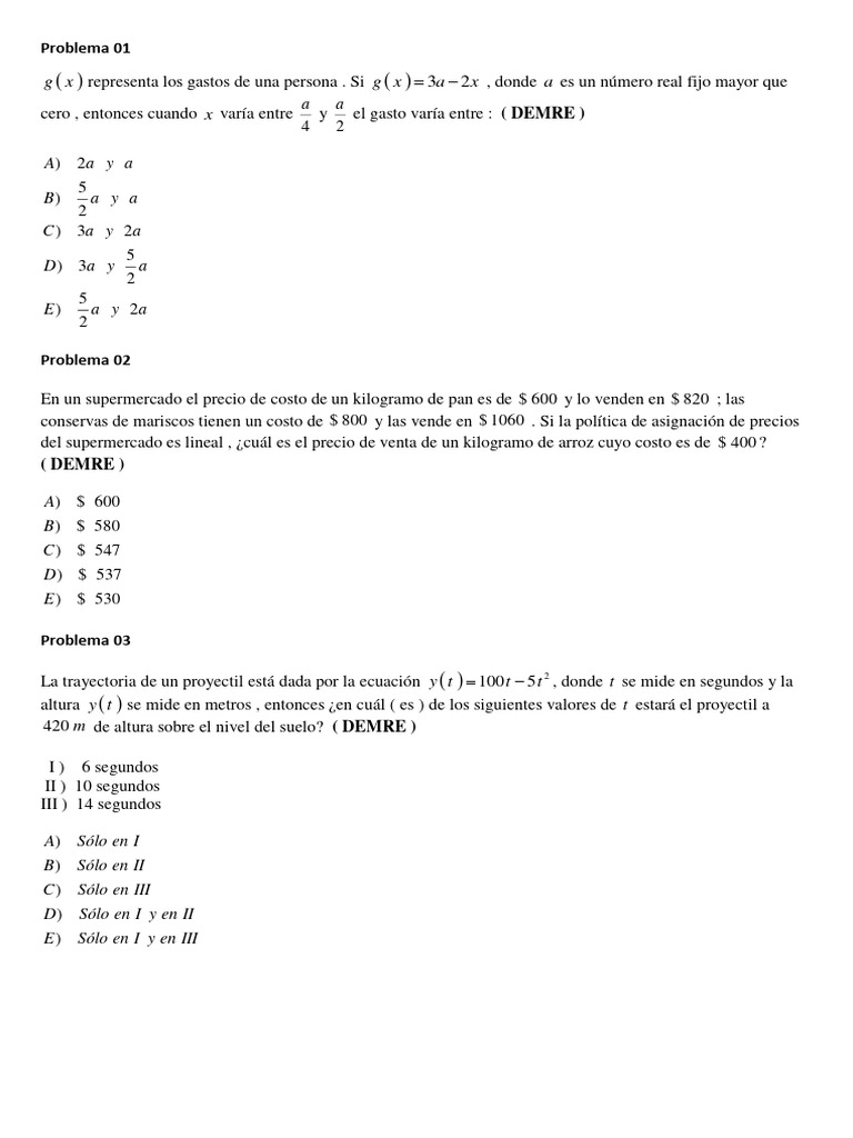 cero , entonces cuando x varía entre y el gasto varía entre : ( DEMRE )