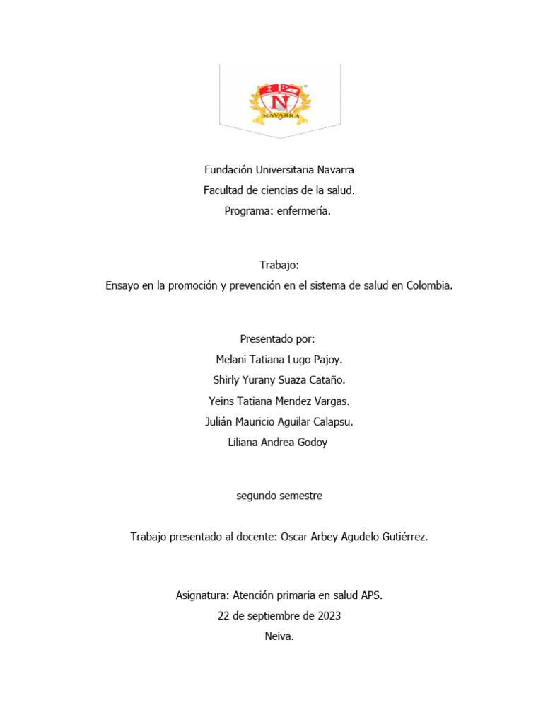 Ensayo en la promoción y prevención en el sistema de salud en Colombia.
