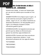 Dia 1: Dia 4: Blastocito Dia 5: Blastocito Dia 6 y 7: Eventos durante la